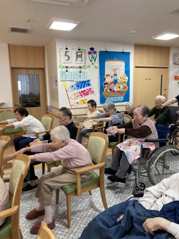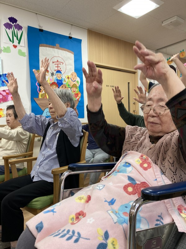 先生と一緒に大きな声を出しながら、体もしっかり動かします。