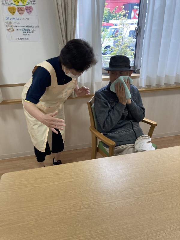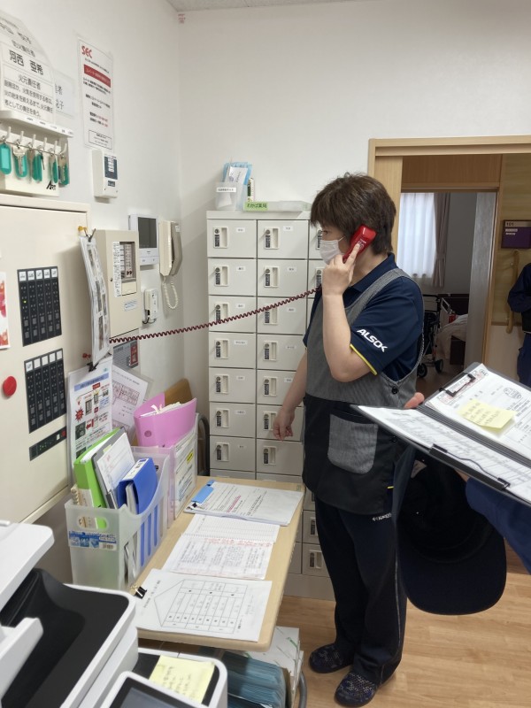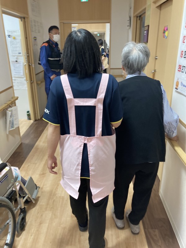 利用者様に安心していただけるお声がけをし、煙を吸い込まないようタオルで鼻や口を覆っていただきながら避難誘導します。