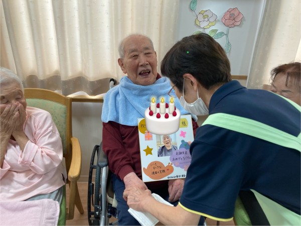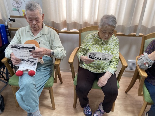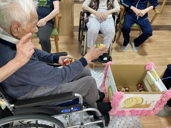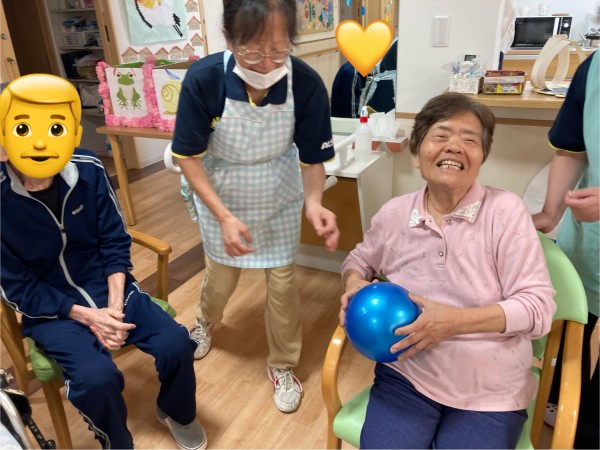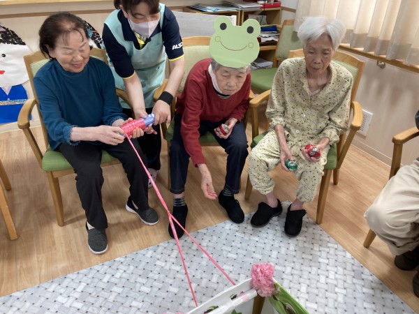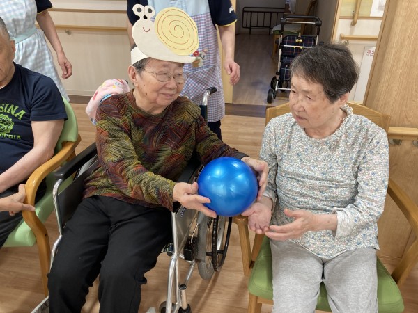 しりとりの言葉と同時に、雨粒ボールを隣の人につないでいきました。みなさん、がんばっていただきました!