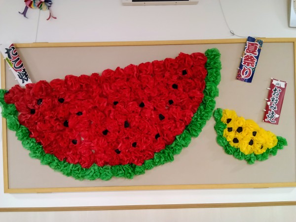 フロアには大きなスイカが登場!とても美味しそうに出来上がりました♡