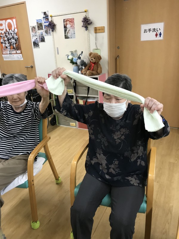 岡庭先生のタオル体操に参加される皆さんの様子です。