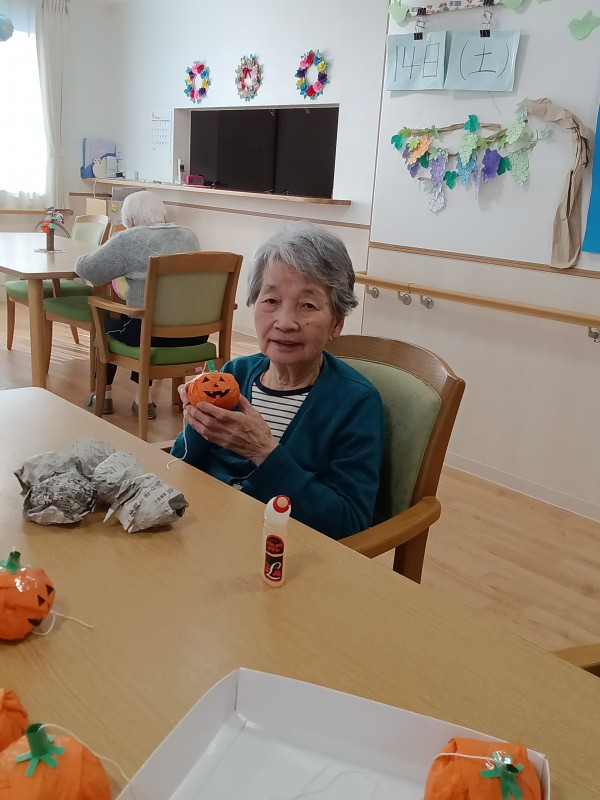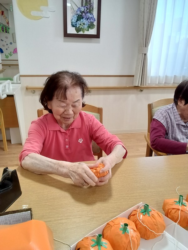 3Uでは来月の壁飾りに小さくて可愛い柿!?に顔を付けました〜♪
