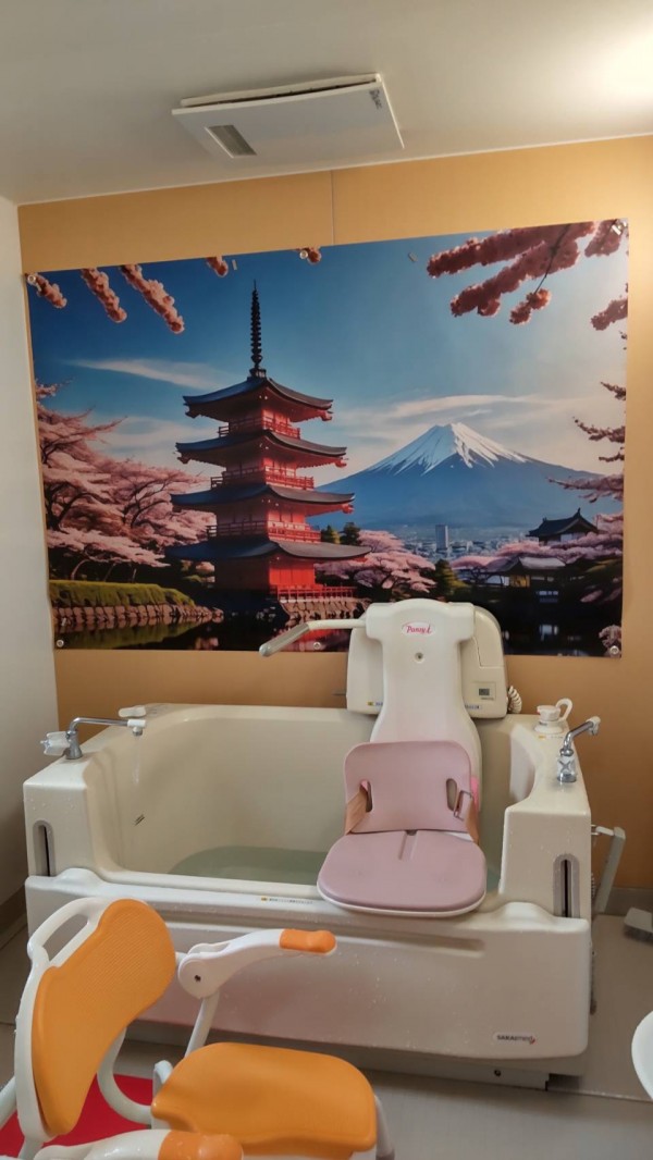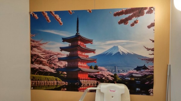今日は風呂場に富士山五重の塔のポスターを飾りました~