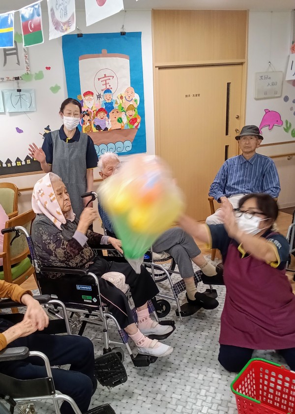 ボールバレー♪思いっきり腕を上げて「そーれ!!」