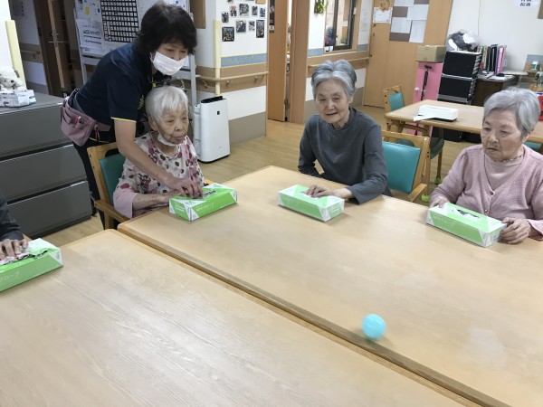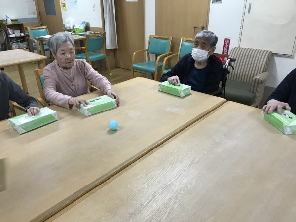 今日のレクリエーションはいつもの人気運動、エアホッケーです!