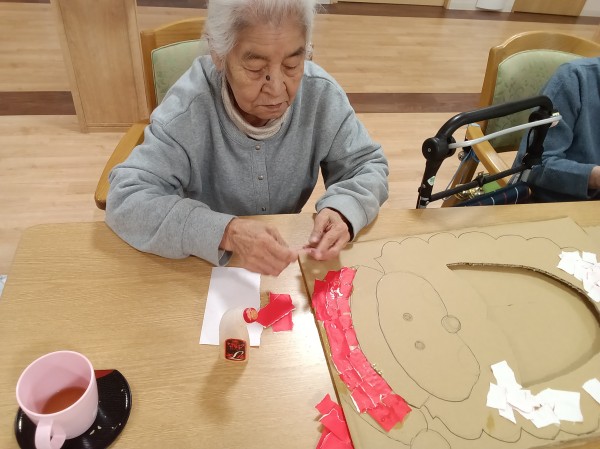 1Uの皆さんが、ゲームで使うサンタクロースさんを作ってくれています♡