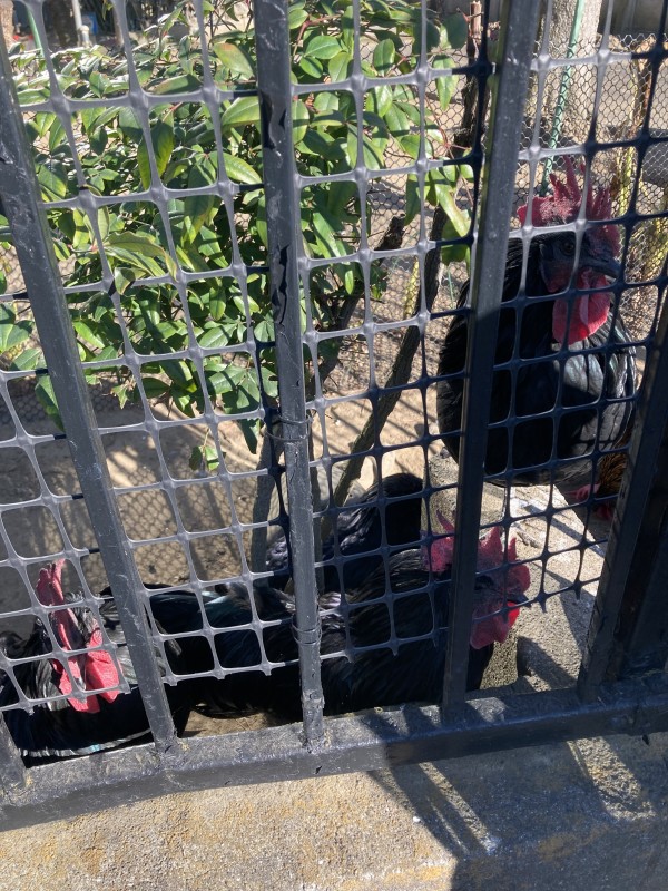 お二人は普段の散歩中、道端でニワトリを見かけると、