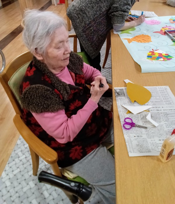 器用に折り紙を貼って、つないでいくと…