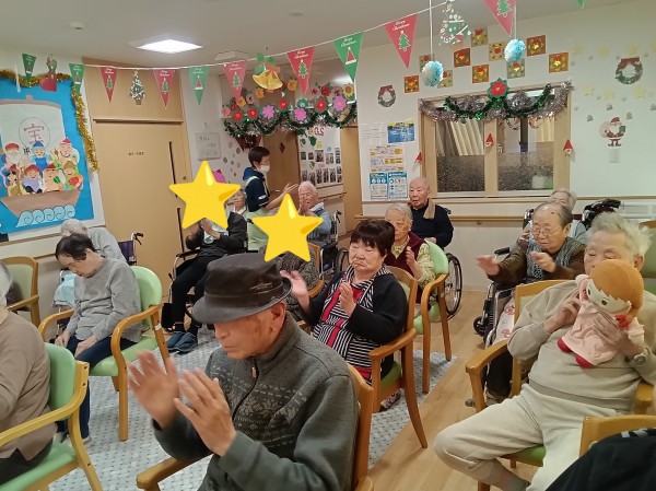 クリスマスソングを歌いながら楽しく体を動かしました(*^^*)