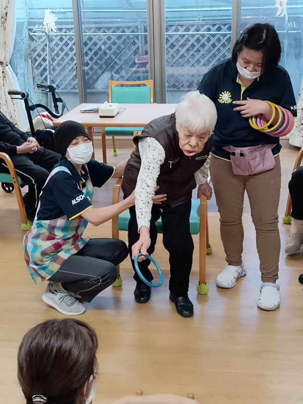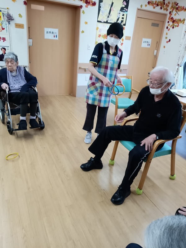 今日はみんなで輪投げレク!