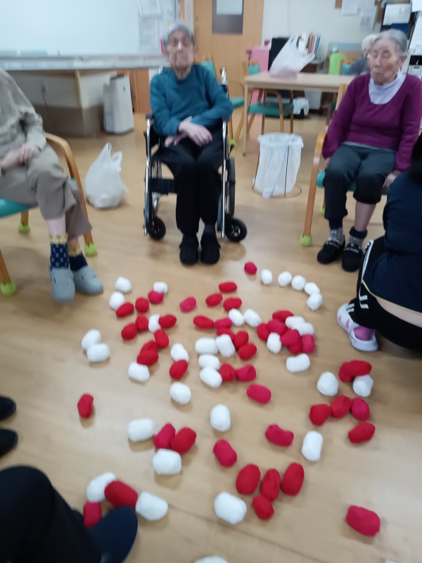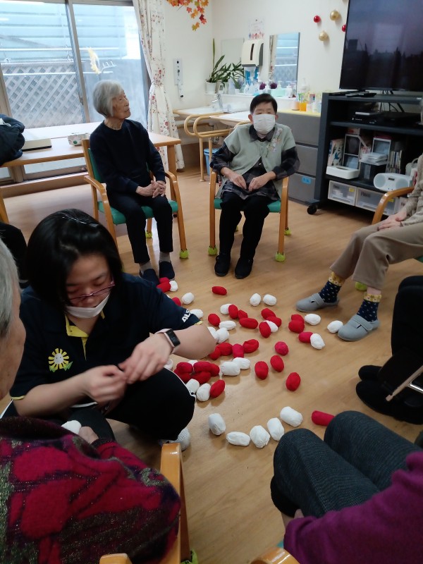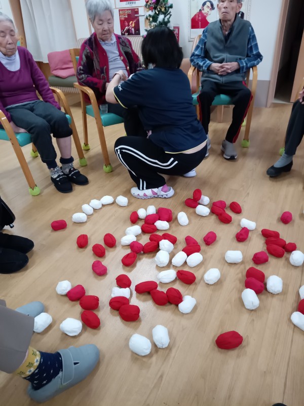 「せーのっ!」の合図で、一斉に玉をカゴへ投げ入れる皆さん。