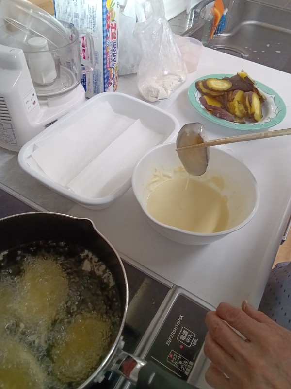 ホームの畑で採れたさつま芋を今回は天ぷらにして見ました!ご利用者様も「やっぱり、揚げたては違うね〜」「美味しいね♪」と、またまた大好評でした(≧∇≦)b