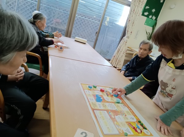 サイコロを振って進むたびに「歌を歌う」「昔の思い出を語る」といったお題が待ち受けていて、笑い声があふれる時間になりました。