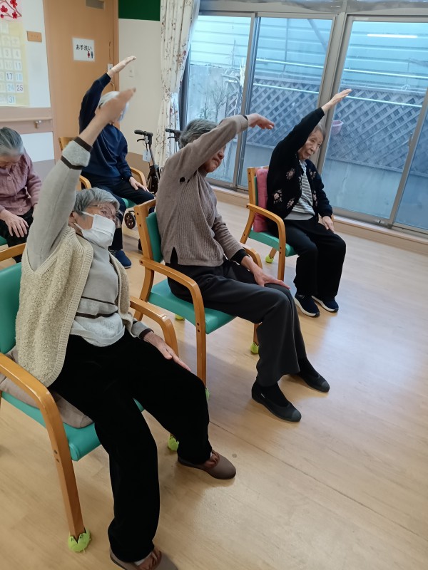スタッフと一緒に、軽い運動で体もぽかぽか。