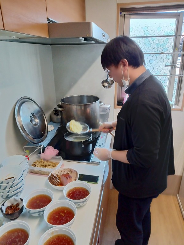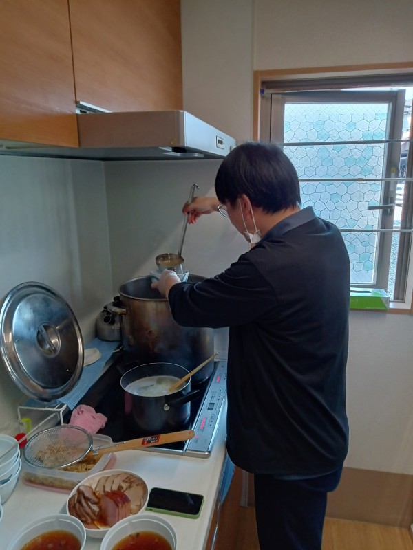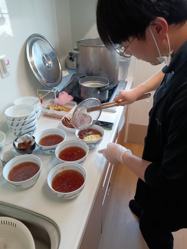あの時の経験を生かして、今日はその頃のラーメンの味を「みんなの家」の皆さんに提供したいと思いました。