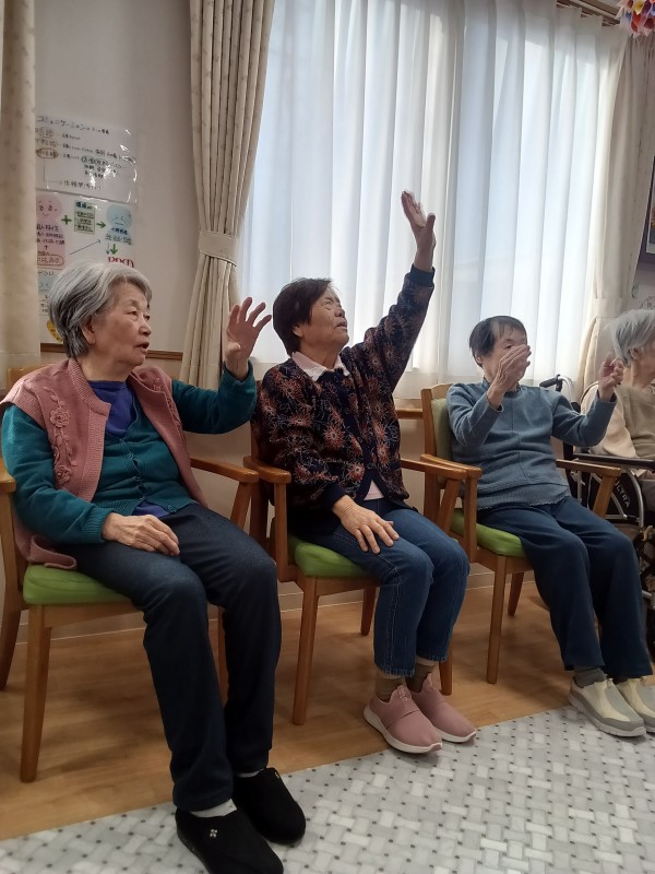 ②昭和の歌…昭和の歌で軽体操をしながら憧れのハワイ航路,トンカラリン等ご利用者様のリクエストも有り懐かしい昭和を楽しまれました♪
