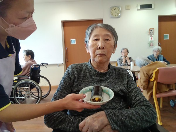 お昼にご飯の代わりに恵方巻をご用意して皆様に食べて頂きました。
