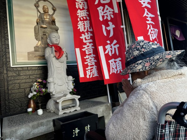 寒かったけど、定番のお地蔵さんにお参りできました。それにしても、とってもいい笑顔じゃないですか!笑