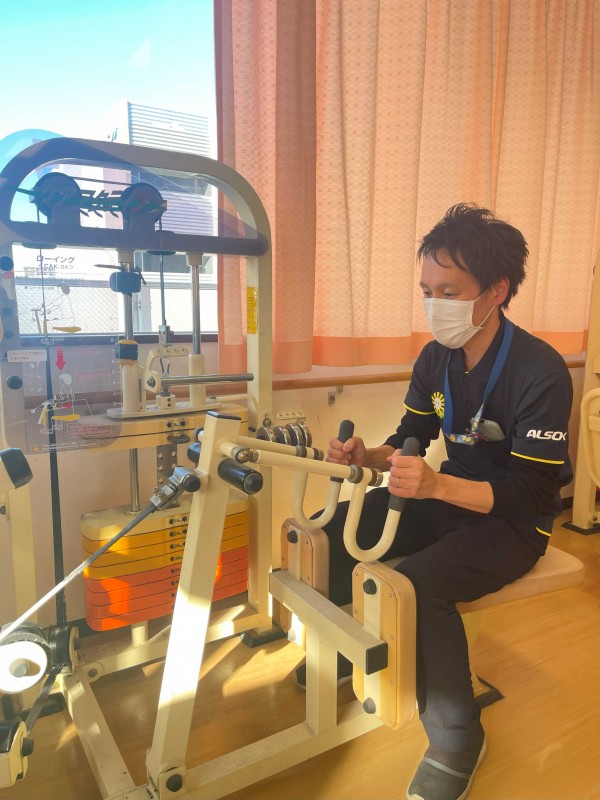 筋トレマシンで自分のペースを守りながら、一生懸命に取り込んでいました。