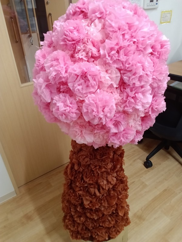 この前、作っていた茶色の花紙は木に使用しました♪
