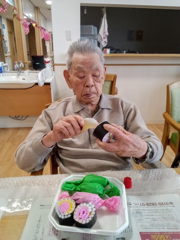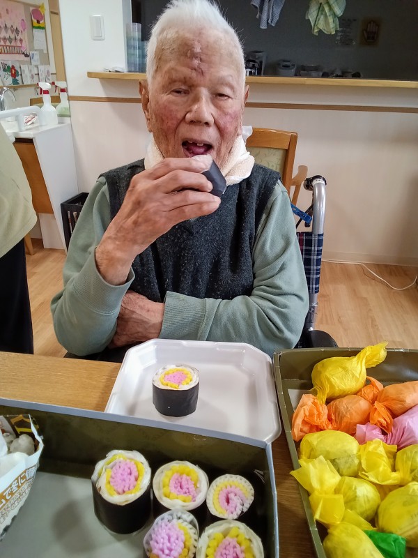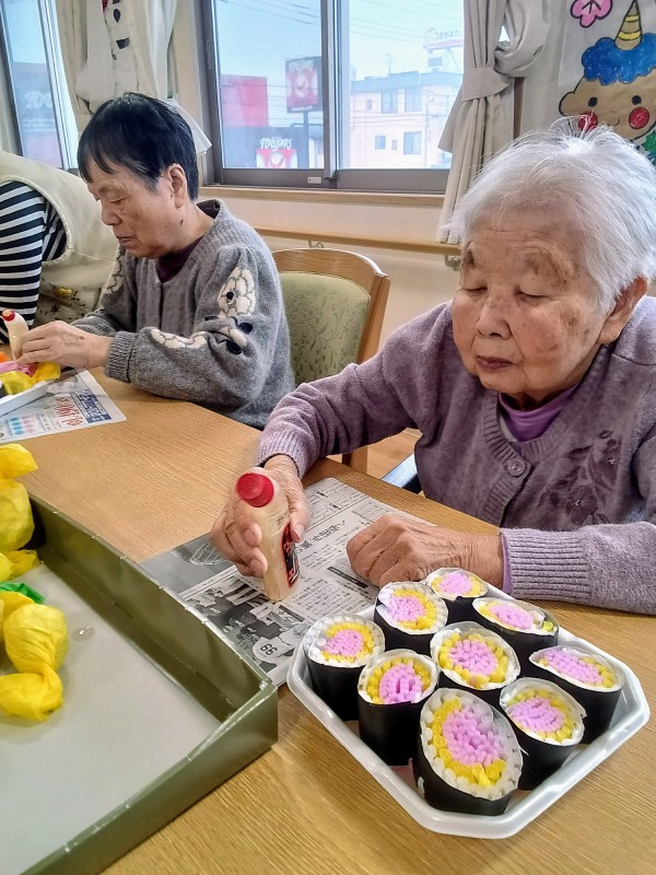 2月の節分で作った恵方巻き飾りを輪切りにすると〜まるで本物みたいな美味しそうなのり巻きが出来上がりました♪