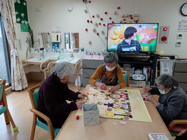 春の訪れを感じる3月、みんなの家では利用者の皆さんと一緒にカレンダー作りを行いました。