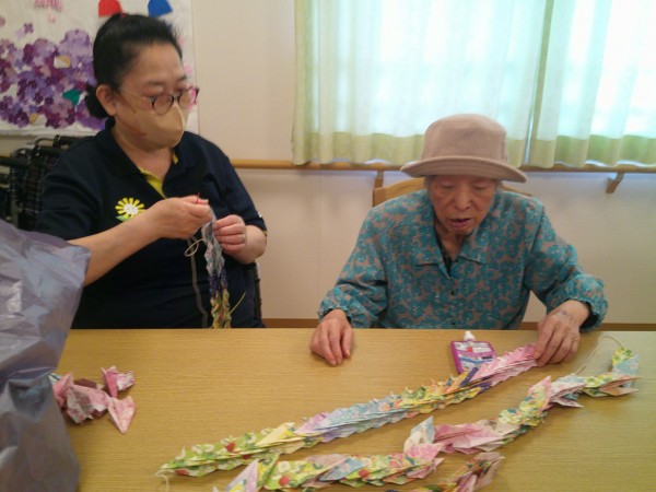 千羽鶴に取り掛かって頂きました!!もちろん職員もお手伝いさせて頂きます♪