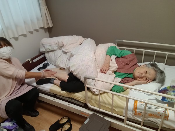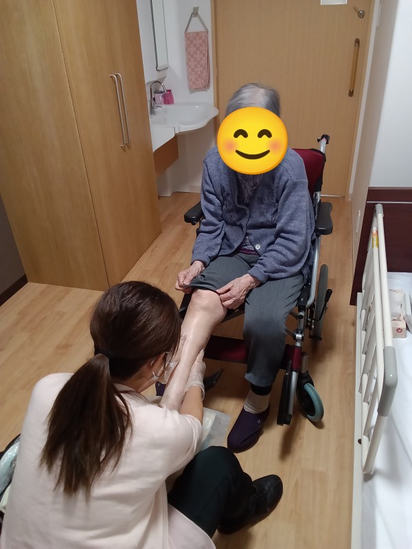 セラピストの方と会話を楽しまれ、笑顔の