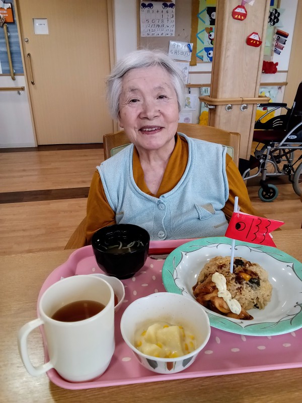 お昼には特別メニュー「チキンステーキピラフ」でお祝いしました(*^^*)