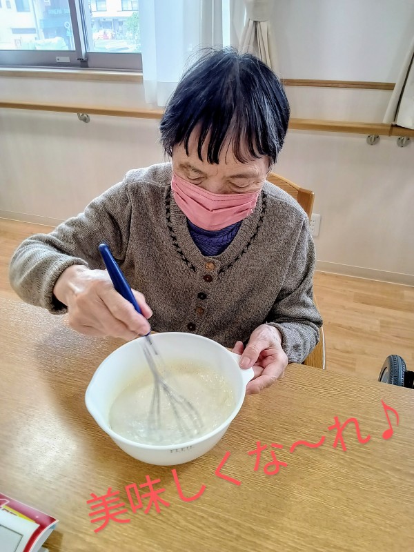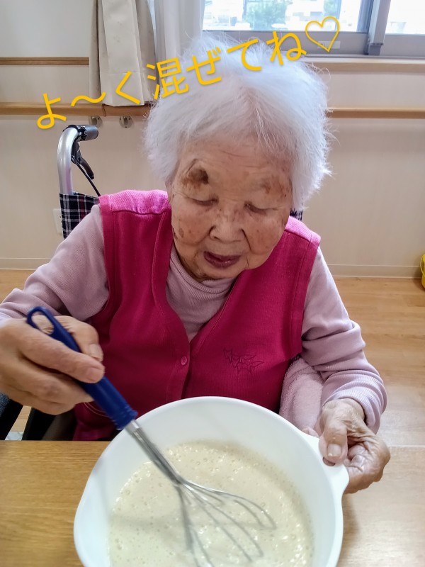 朝から利用者様に生地を混ぜていただき、職員皆でクレープ生地を焼きました♪