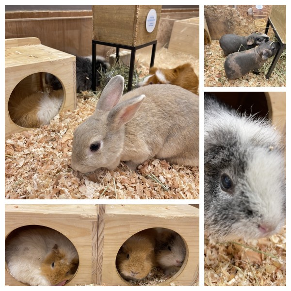さっそく、インコ、ヒヨコ、ウサギちゃんたちとのふれあい。