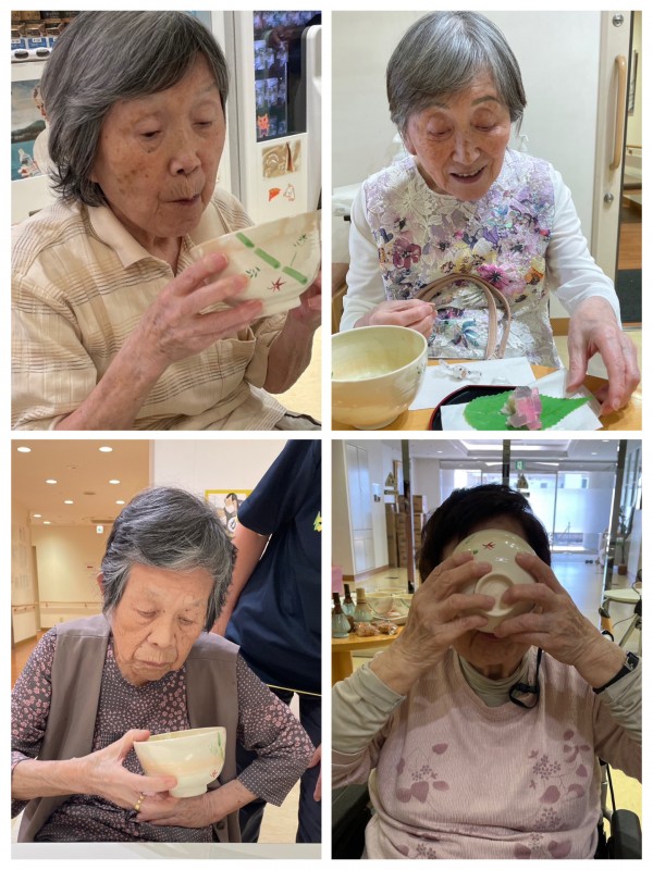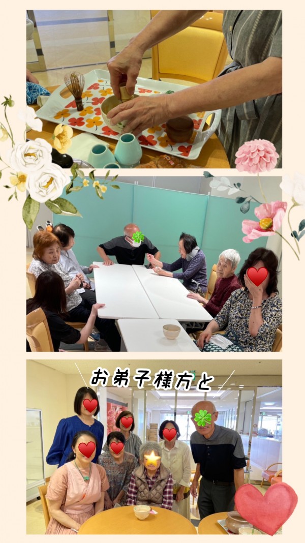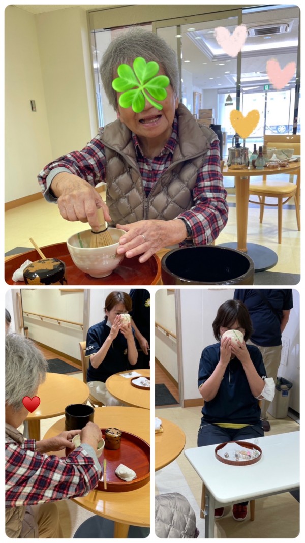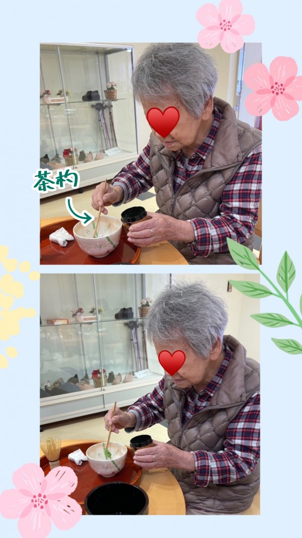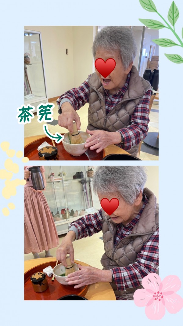 入居者様(先生)自ら茶筅を振り抹茶を点てて下さいます