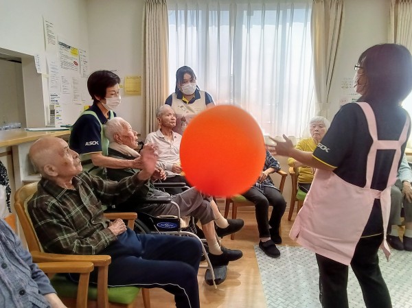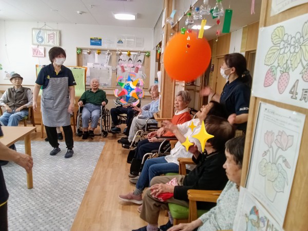 大玉ゲーム☆大きな風船が飛んできて大歓声です!