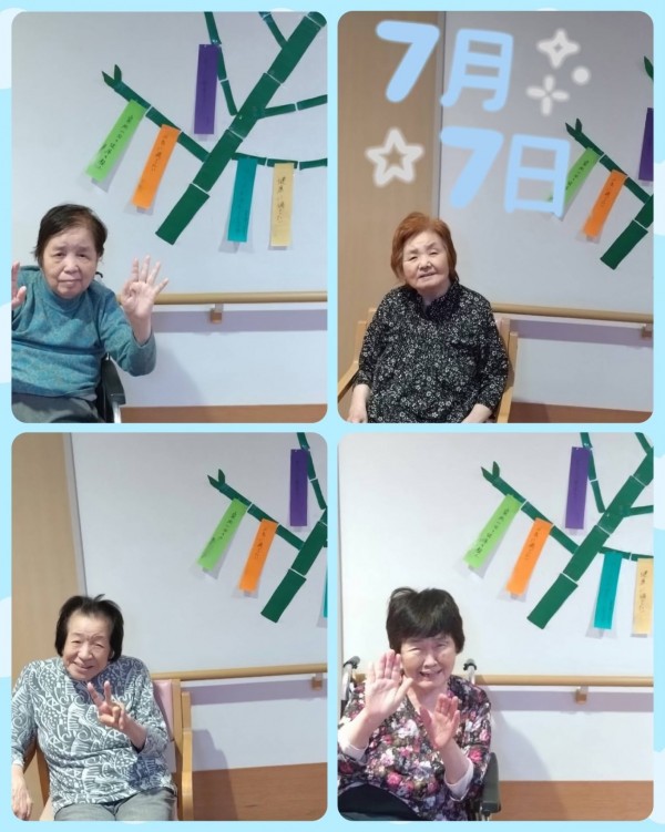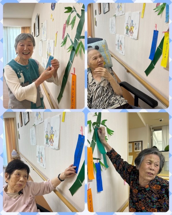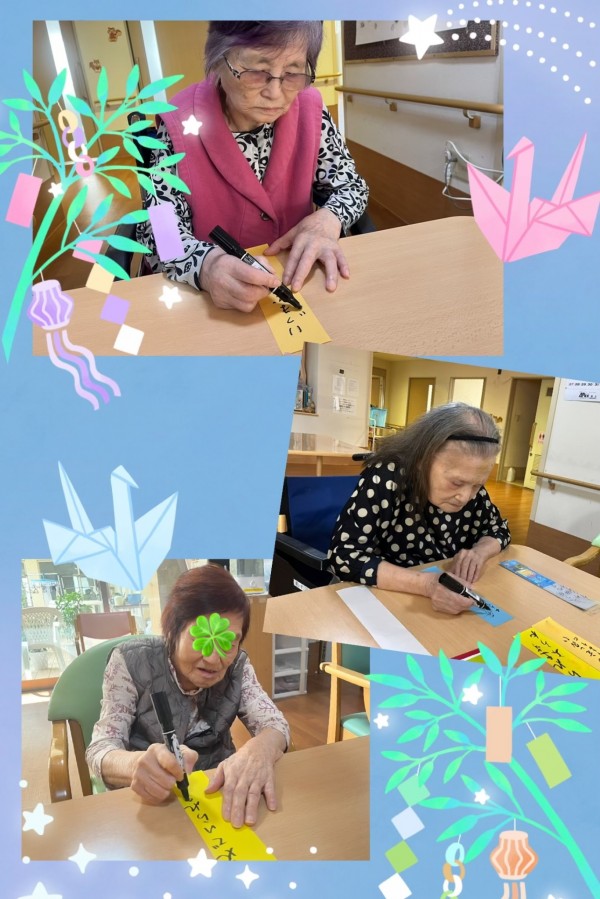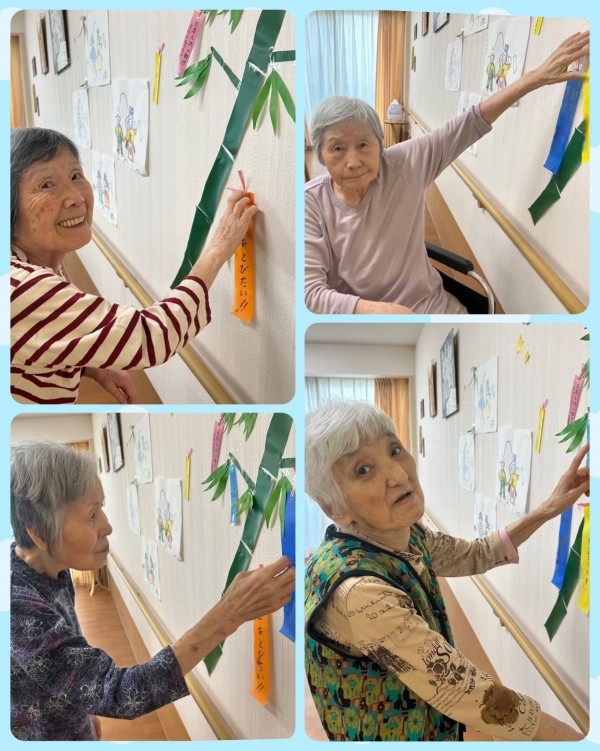 利用者様と一緒に七夕の飾り付けを