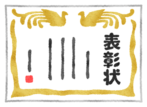 表彰状賞状の他に副賞としてOO万円が贈呈されました!