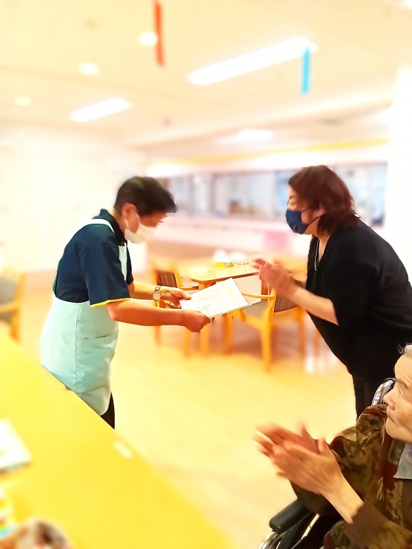 皆様の利用者様の前にて表彰式が開催されました(^^♪