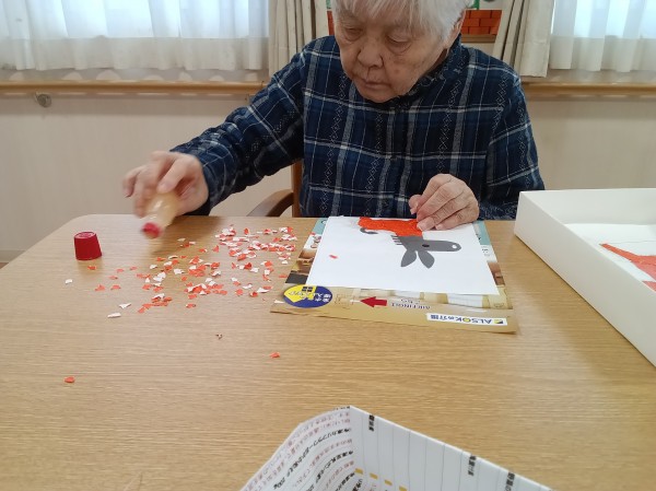 みなさんの日々の力作を、作品コーナーに展示しています。「これも、これも、私のだ」<( ̄︶ ̄)>、と通りがかりに眺めていらっしゃるお姿にスタッフも嬉しくなります。ホールを華やかに飾ってもくれていますね( ╹▽╹ )