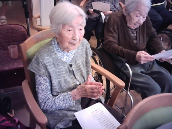 懐かしい曲や入居者様が知っている曲を何曲か行い手拍子を打たれたりして