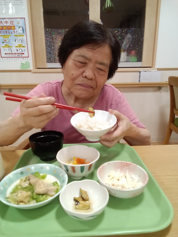 最後に採れた数個のなすを浅漬けにして各フロアで少しずつ分けて夕食の1品に!美味しく頂きました(^o^)v「来年も食べたいね♪」「楽しみだね♡」と皆さんにホームの畑で採れた夏野菜を楽しんで頂けました〜♪