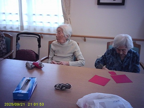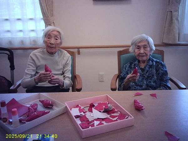 入居者様皆様で秋の味覚のサツマイモの工作を行いました(^^)