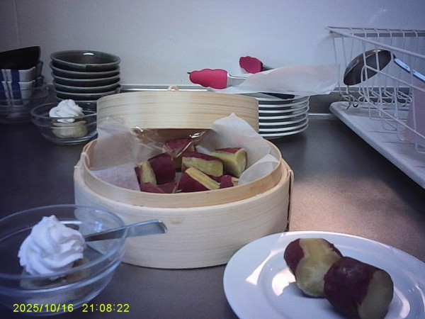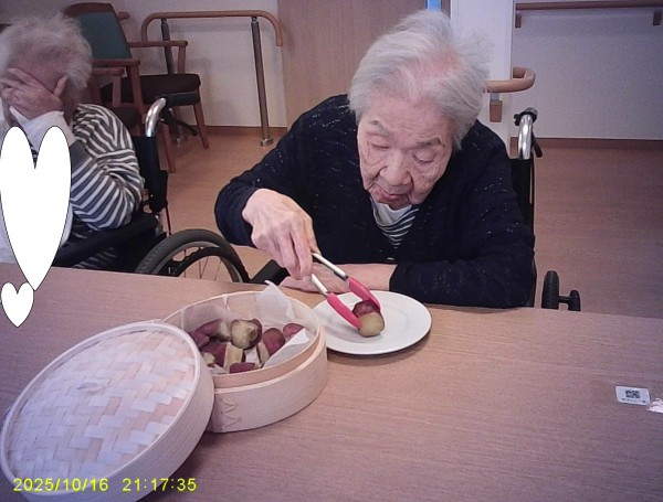 おやつレクで秋の味覚のふかし芋を味わいました(*^^)v