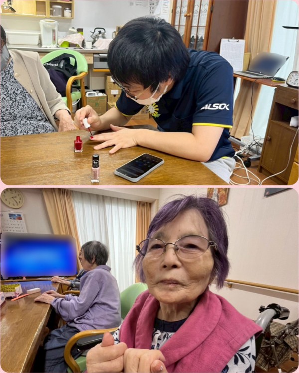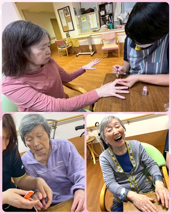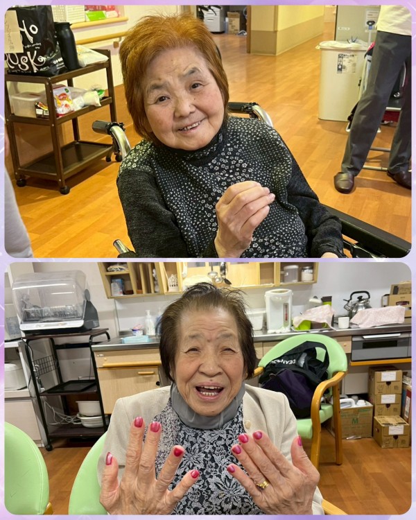 入居者様のご家族様もいらっしゃり、ひ孫様も一緒にマニキュアを塗って下さいました(´艸`*)