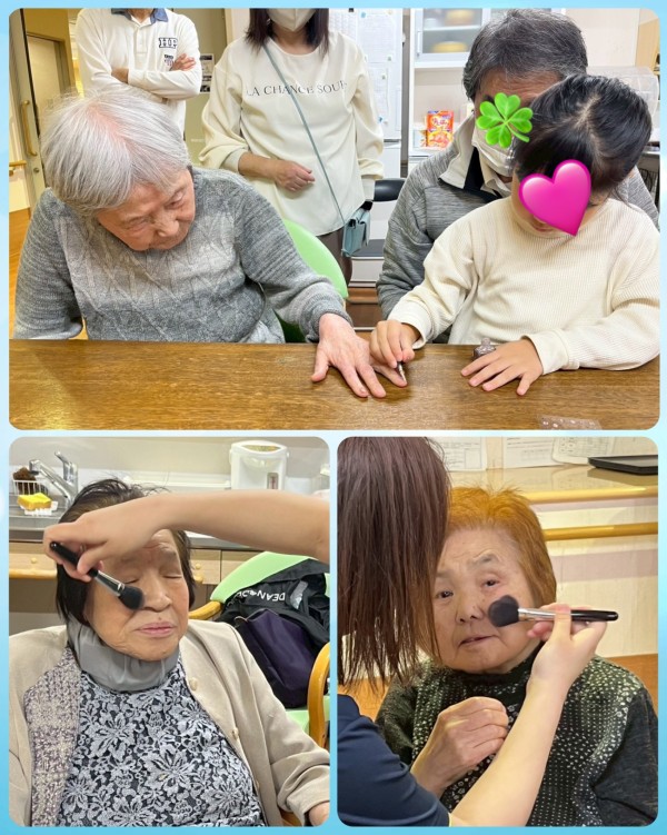 ご家族様と職員のサポートを受けながらお化粧&マニキュアを楽しんでいただきました(*´▽`*)