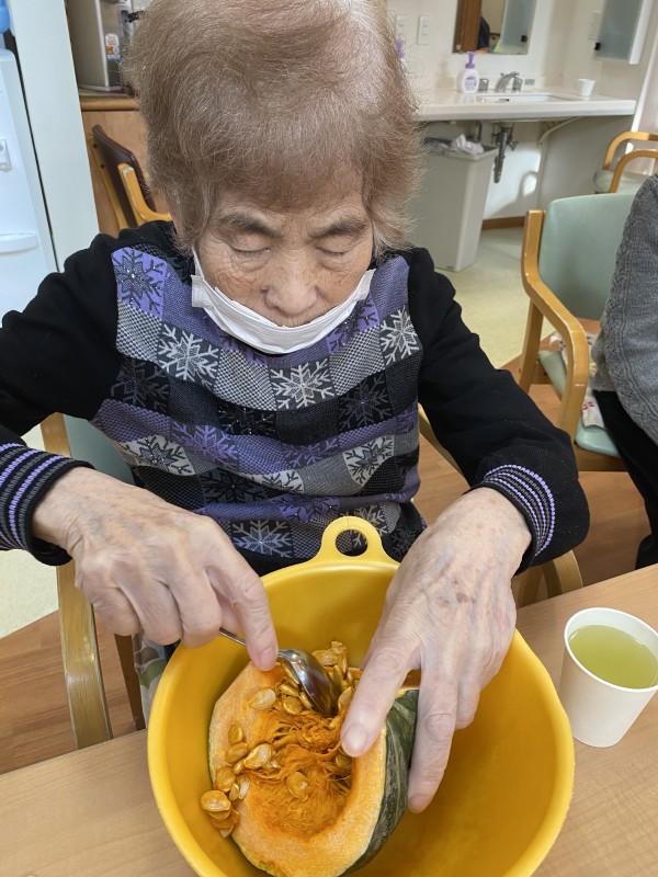 今日は、秋の味覚“かぼちゃ”を使ってかぼちゃ餅をつくりました( ´ ▽ ` )