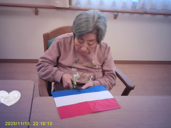 色紙を切ったり、貼ったりしながら、楽しそうに作業されていました。