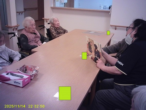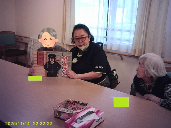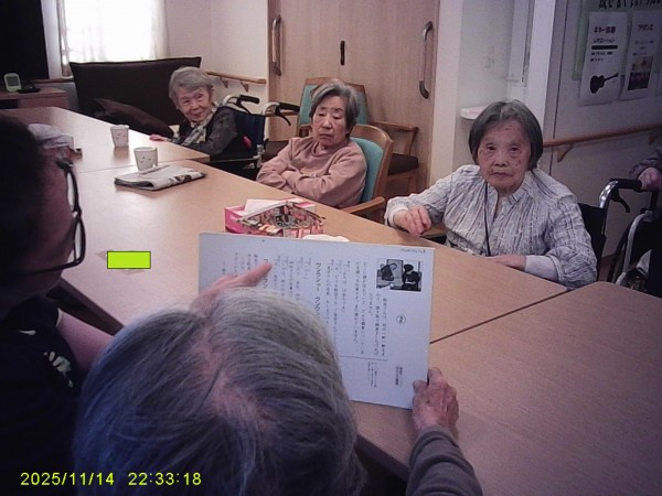 利用者様の読み方が上手で一人一人の声色変えながら読んでいただき皆さんもビックリしてましたよ