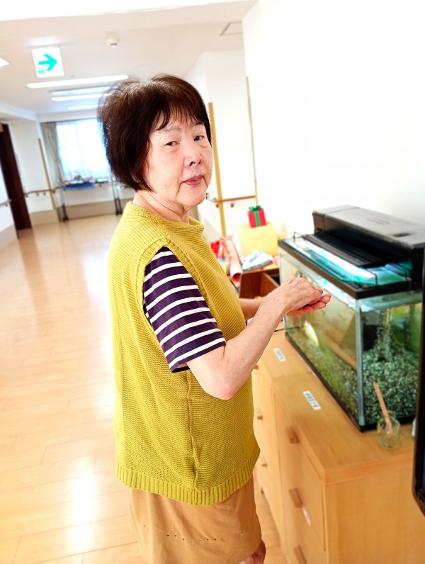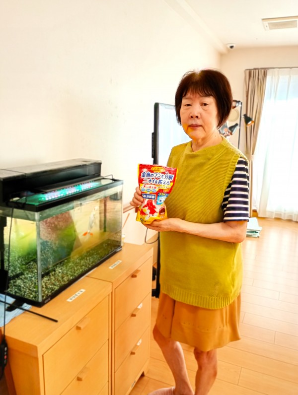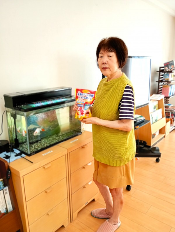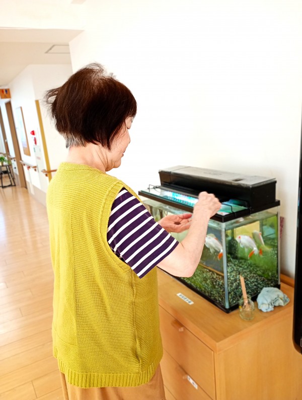 2日に1回と、ご利用者様のK様が金魚の餌をあげています\(^o^)/