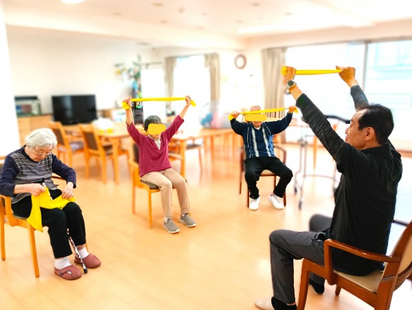 運動専門トレーナーの岡田先生のご指導で身体を動かし