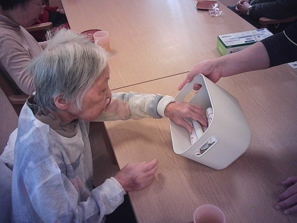 箱の中から一枚ずつおみくじを引きながら、「何が出るかな?」とドキドキの表情(^^)