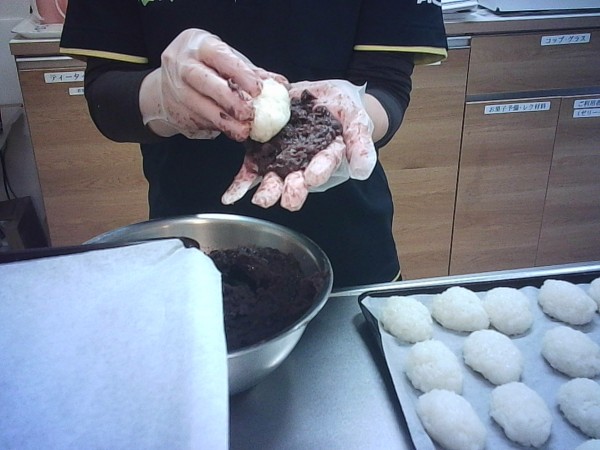 今日のおやつは、みなさんの大好きな「手作りおはぎ」です